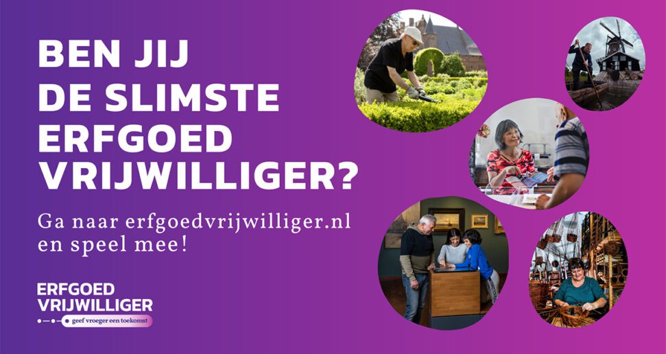 Werk jij als vrijwilliger bij een museum, kasteel, historische vereniging of monument en wil je jouw kennis van erfgoed bewijzen? Speel dan mee met de landelijke kennisquiz. De digitale voorronde is nu geopend. De erfgoedvrijwilligers met de beste score in de online quiz worden uitgenodigd voor de grote finale in het Nederlands Openluchtmuseum op 30 juni. Hier zullen zij strijden voor de felbegeerde titel de Slimste Erfgoedvrijwilliger.